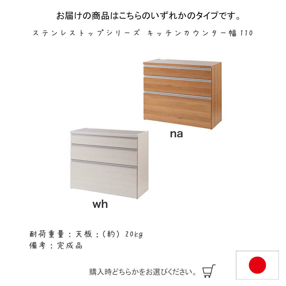 ≪日本製≫『ステンレストップシリーズ キッチンカウンター幅110』キッチンカウンター キッチン収納 レンジ台 カウンターテーブル レンジボード食器棚 引出し 引き出し ステンレスキッチンカウンター 白 ホワイト 木目調 ナチュラル ステンレストップ 天板