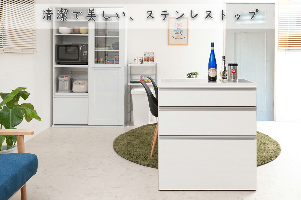 キッチンカウンター キッチン収納 レンジ台 カウンターテーブル レンジボード商品番号:nasa0960 ステンレストップシリーズ キッチンカウンター幅80 艶出しホワイト 1.便利なステンレストップ2.すっきり背面で間仕切りにも。