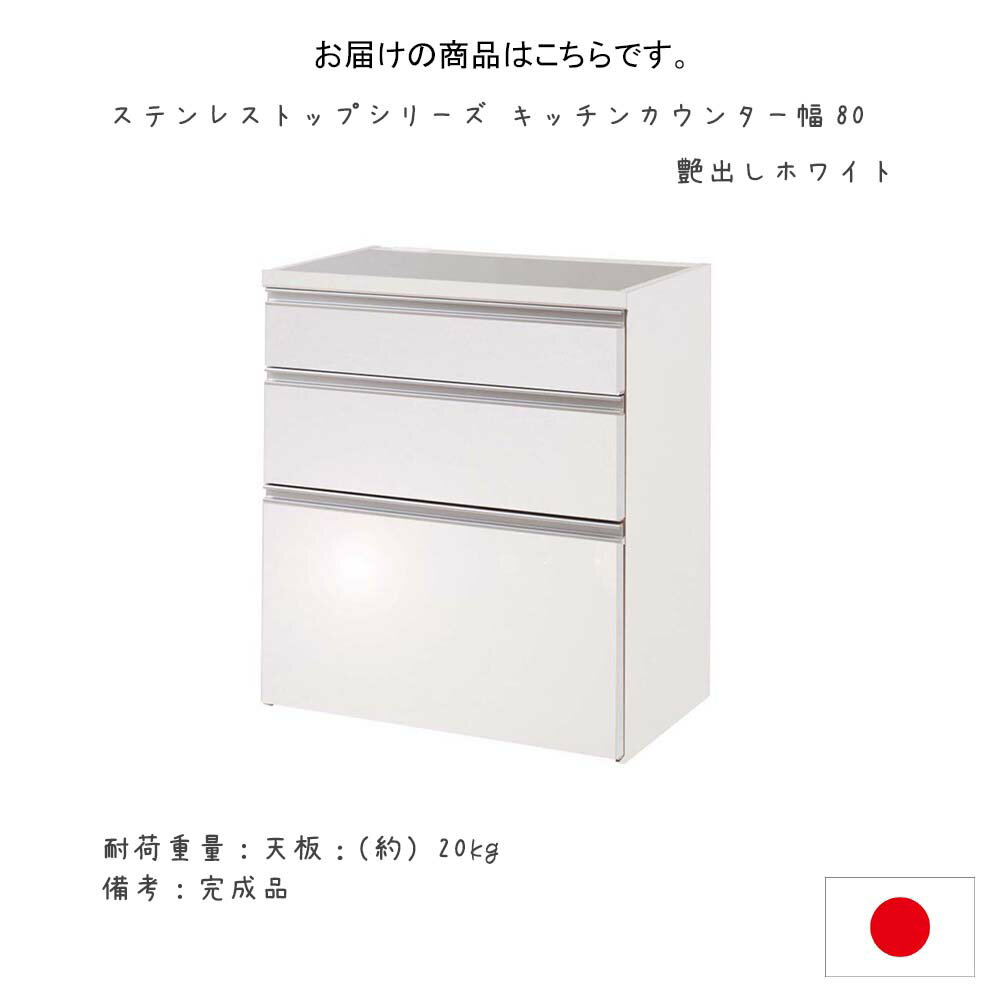 ≪日本製≫『ステンレストップシリーズ キッチンカウンター幅80 艶出しホワイト』キッチンカウンター キッチン収納 レンジ台 カウンターテーブル レンジボード食器棚 引出し 引き出し ステンレスキッチンカウンター 白 ホワイト 艶あり 光沢