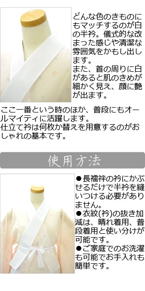 半衿 半襟 半えり 丸洗いOK 洗濯可能 白 結婚式に 成人式に 披露宴に 小紋 正装 喪服 ※撮影状況やモニター設定により、実際の商品の色合いと異なる場合がございます。